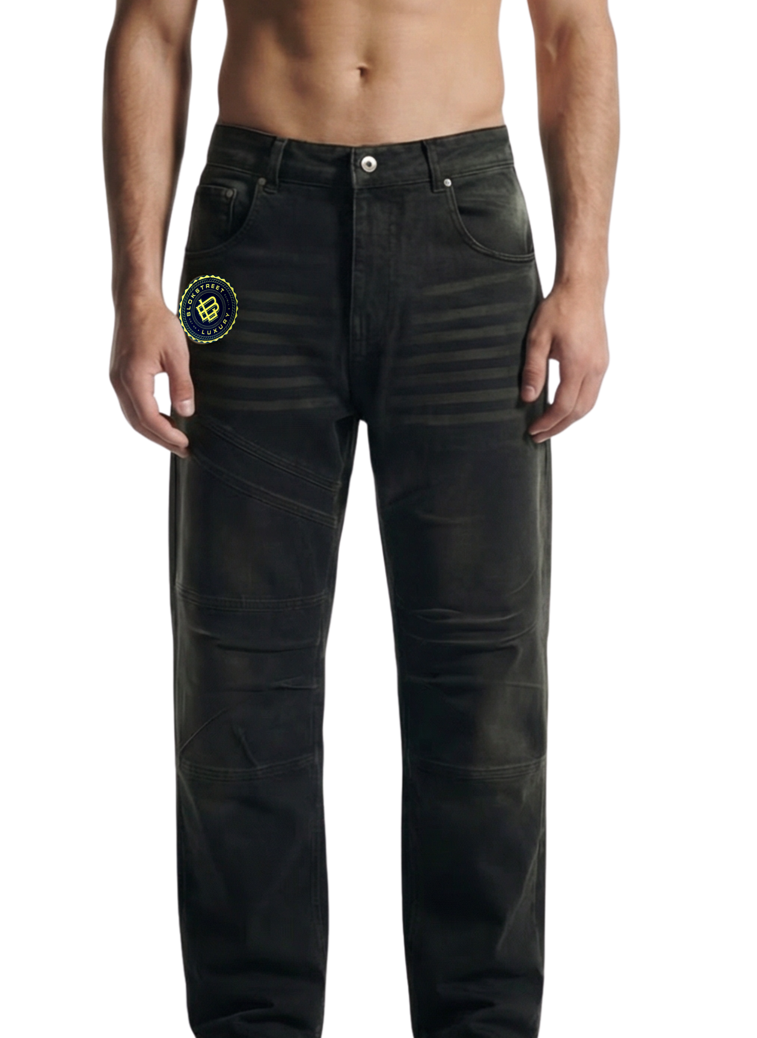 Utility Panel Straight-Leg Denim Pants